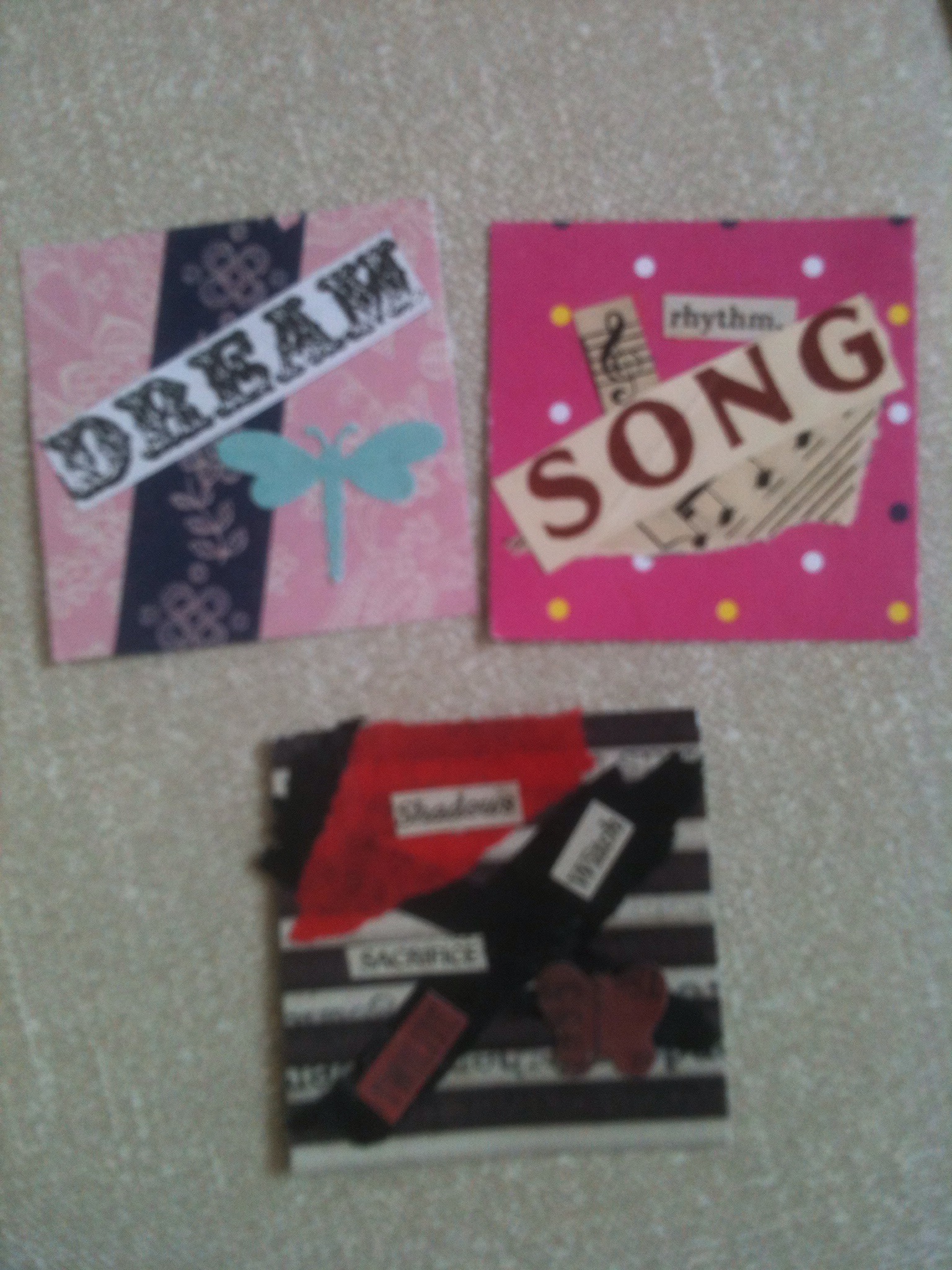 No post from the crafts course this week as I forgot to take my camera with me. We poured candles and finished assembling the magnets from the little squares we made previously. It was nice to see things being finished.